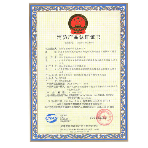 APEG-J 消防產(chǎn)品認(rèn)證證書